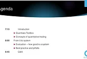 IT 와 Social 이야기 [BioSound Systems] Python for Finance by manga0713 2016. 2. 16. Python for Finance from BioSound Systems || Multi TIC 공유하기 게시글 관리 망가천재의 스토리텔링 저작자표시 비영리 변경금지 (새창열림) 'IT 와 Social 이야기' 카테고리의 다른 글 [Ashal aka JOKER] Java RESTful API with JAX-RS (0) 2016.02.17 [PyData] Python in the Financial Industry The universal tool for end-to-end development by Felix (0) 2016.02.17 [James Blackburn] Arctic: High-performance IoT and financial data storage with Python and MongoDB (0) 2016.02.16 [Quantiacs] Quantiacs Quant Finance 101 (0) 2016.02.16 [Quantopian] Portfolio and Risk Analytics in Python with pyfolio (0) 2016.02.16 관련글 [Ashal aka JOKER] Java RESTful API with JAX-RS [PyData] Python in the Financial Industry The universal tool for end-to-end development by Felix [James Blackburn] Arctic: High-performance IoT and financial data storage with Python and MongoDB [Quantiacs] Quantiacs Quant Finance 101